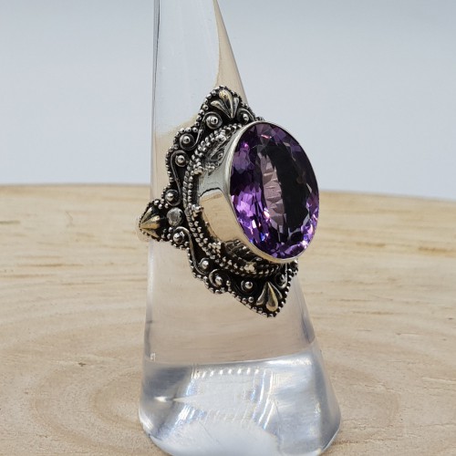 Mooie Sterling zilveren ring gezet met groene Amethist.
