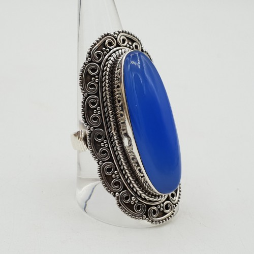 925 Sterling zilveren ring gezet met blauw Chalcedoon.