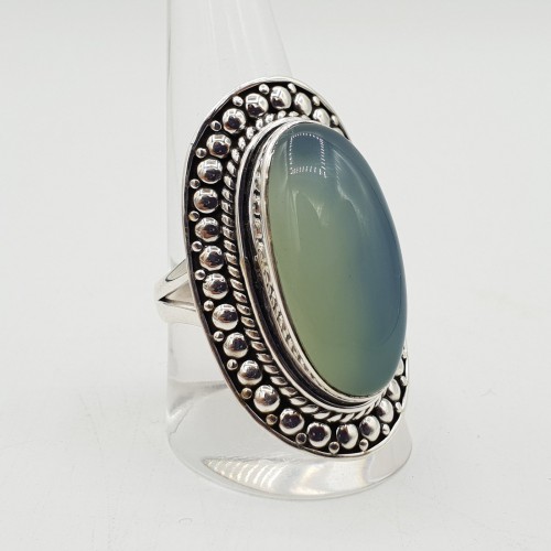925 Sterling zilveren ring gezet met auqa Chalcedoon.