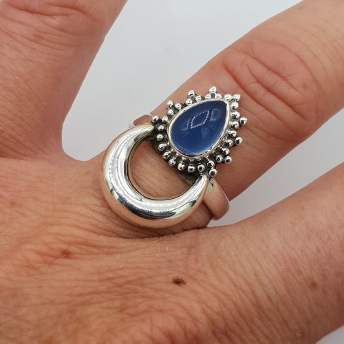 Mooie Sterling zilveren maan ring gezet met blauw Chalcedoon.
