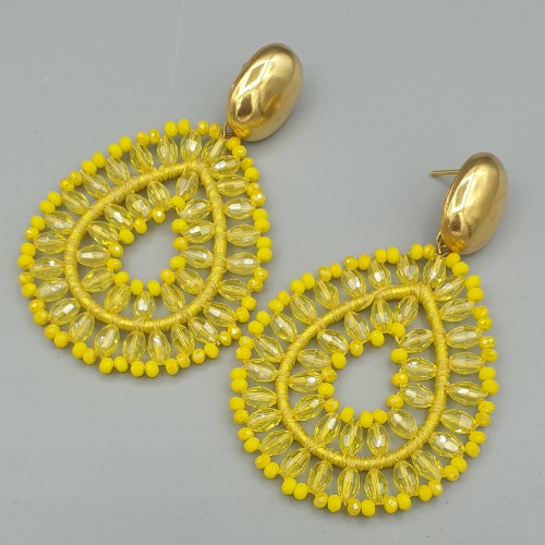 Handgemaakte vergulde oorbellen met ovale gele hanger.