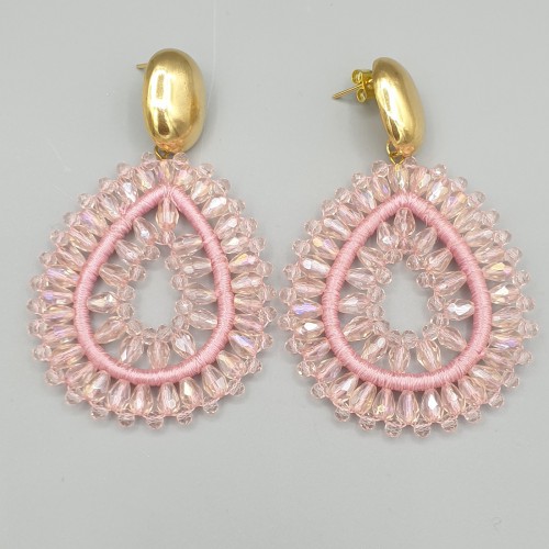 Handgemaakte vergulde oorbellen met druppelvormige roze hanger.