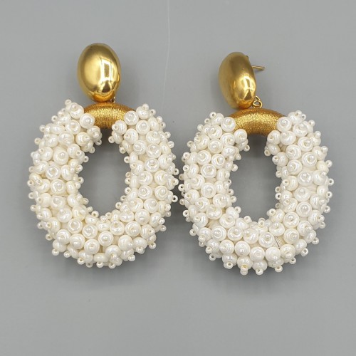 Handgemaakte vergulde oorbellen met ovale parelmoer kleurige hanger