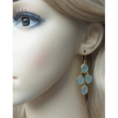 Mooie Vergulde (over Sterling zilver) oorbellen gezet met aqua Chalcedoon.