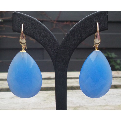 Mooie Vergulde (over Sterling zilver) oorbellen met blauwe Chalcedoon briolet.