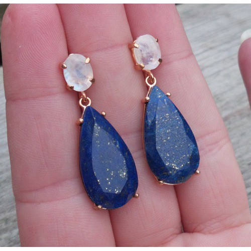 Mooie rosé vergulde oorbellen met Lapis Lazuli briolet.