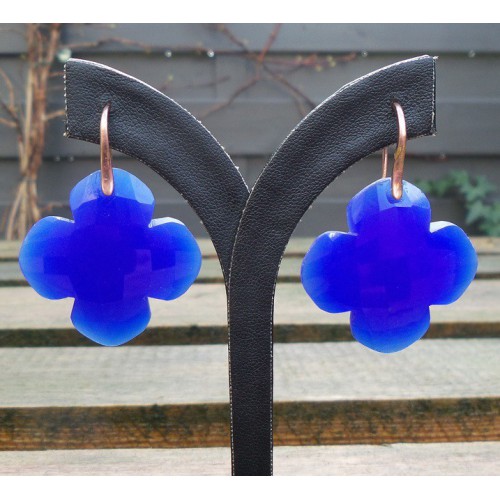Mooie rosé Vergulde (over Sterling zilver) oorbellen gezet met klaver van blauw Chalcedoon.