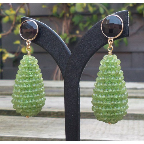 Mooie Vergulde (over Sterling zilver) oorbellen gezet met kleine facet geslepen Peridot edelsteentjes en ronde Smokey Topaas.