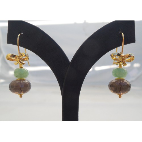 Vergulde (over Sterling zilver) oorbellen met Smokey Topaas en Aventurijn.