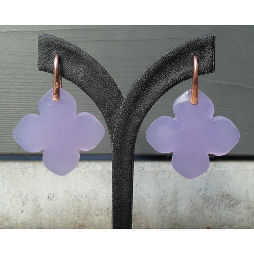 Mooie rosé Vergulde (over Sterling zilver) oorbellen gezet met klaver van lavendel Chalcedoon.