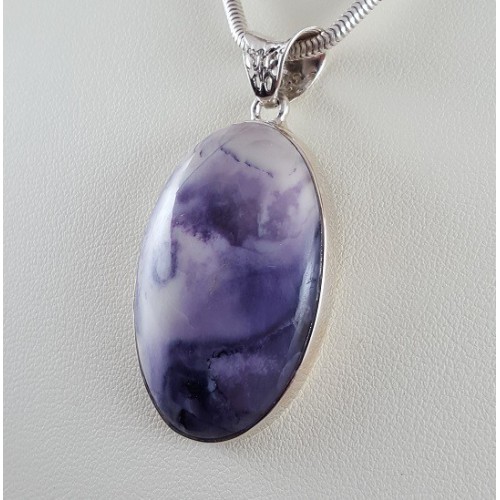 Mooie Sterling zilveren hanger met paars / roze Botswana Agaat gezet in bewerkte setting.