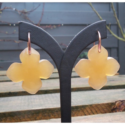 Mooie rosé Vergulde (over Sterling zilver) oorbellen gezet met klaver van perzik Chalcedoon.