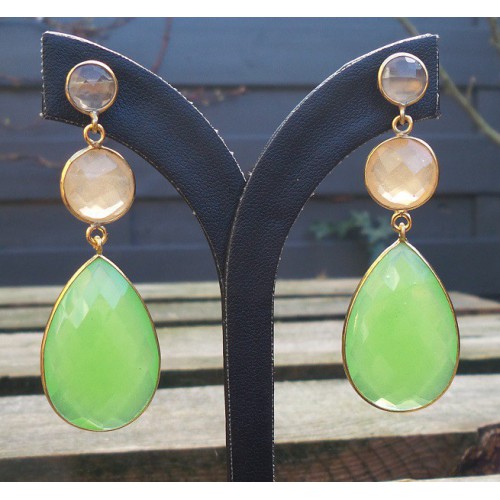 Mooie Vergulde (over Sterling zilver) oorbellen gezet met perzik Chalcedoon en groen Chalcedoon.