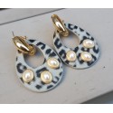 Mooie Vergulde (over messing) creolen (nikkelvrij) met hanger van Ecoleather en gezet met Ornamentjes.
