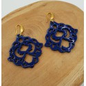 Mooie oorbellen met blauw gelakte Buffelhoorn.
