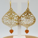 Mooie oorbellen met Buffelhoorn en Citrien quartz druppel.