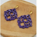 Mooie oorbellen met paars gelakte Buffelhoorn.