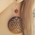Mooie rosé vergulde (over Sterling zilver) oorbellen met Buffelhoorn en Carneool.