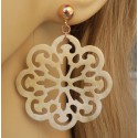 Mooie oorbellen van Sterling zilver en verguld met rosé goud met uitgesneden Buffelhoorn.