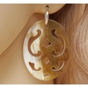 Mooie Sterling zilveren creolen met ovale uitgesneden Buffelhoorn.