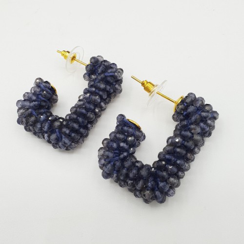 Rechthoekige glassberry creolen Labradoriet steentjes