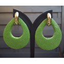 Mooie creolen met druppel van appeltjes groene Roggenleer (Roggehuid / Stingray ).