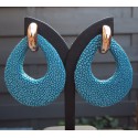 Mooie creolen met druppel van oceaan blauwe Roggenleer (Roggehuid / Stingray ).