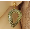 Mooie Vergulde (over Sterling zilver) oorbellen met wavy groene slangenleer hanger.