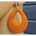 Mooie oorbellen met druppel van oranje Roggenleer ( Roggehuid / Stingray ).
