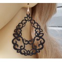 Mooie oorbellen met hanger van zwart eco leer.