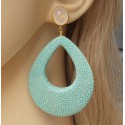 Mooie Vergulde (over Sterling zilver) oorbellen met druppel van Turkoois blauwe Roggenleer (Roggehuid / Stingray ) en witte Onyx.