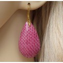 Mooie Vergulde (over Sterling zilver) oorbellen met druppel van oud roze Slangenhuid / Slangenleer / Snakeskin.