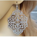 Mooie oorbellen met hanger van eco leer met zilveren glitters.