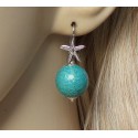 Mooie Sterling zilveren oorbellen met bol van turkoois van Slangenleer / Slangenhuid / Snakeskin.