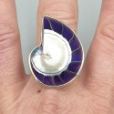 925 Sterling zilveren ring met paarse Nautilus schelp.
