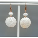 Mooie oorbellen met ronde ivoor kleurige schelp en schelp parel.