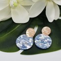 Mooie rosé Vergulde (over Sterling zilver) oorbellen met ronde blauwe mozaïek Parelmoer hanger.