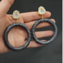 Mooie oorbellen met Vergulde (over messing nickelvrij) oorstekers gezet met Agaat geode en ring van Slangenleer / Slangenhuid.
