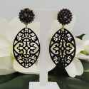 Mooie Vergulde oorbellen met kristallen en hanger van zwarte Buffelhoorn.