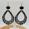 Mooie Vergulde (over Sterling zilver) oorbellen met zwarte Buffelhoorn en zwarte Onyx.