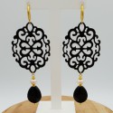 Mooie oorbellen met zwarte Buffelhoorn, zwarte Onyx en Parel.