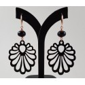 Mooie oorbellen met zwarte Onyx en uitgesneden zwarte Buffelhoorn.