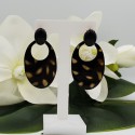Mooie rosé Vergulde oorknoppen gezet met zwarte Onyx en ovale Buffelhoorn hanger met poema print.