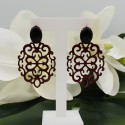 Mooie rosé Vergulde oorknoppen gezet met zwarte Onyx en donker rood gelakte Buffelhoorn hanger.
