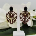 Mooie rosé Vergulde oorknoppen gezet met zwarte Onyx en gelakte Buffelhoorn hanger.
