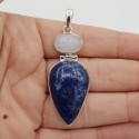 925 Sterling zilveren hanger gezet met Sodaliet en regenboog Maansteen.