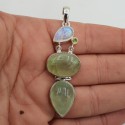 925 Sterling zilveren hanger gezet met Prehniet, regenboog Maansteen en Peridot.
