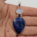 925 Sterling zilveren hanger gezet met Sodaliet en regenboog Maansteen.