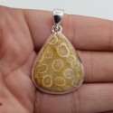 Mooie Sterling zilveren hanger gezet met Fossiel Koraal.