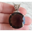 Mooie Sterling zilveren hanger gezet met ronde facet geslepen Smokey Topaas.